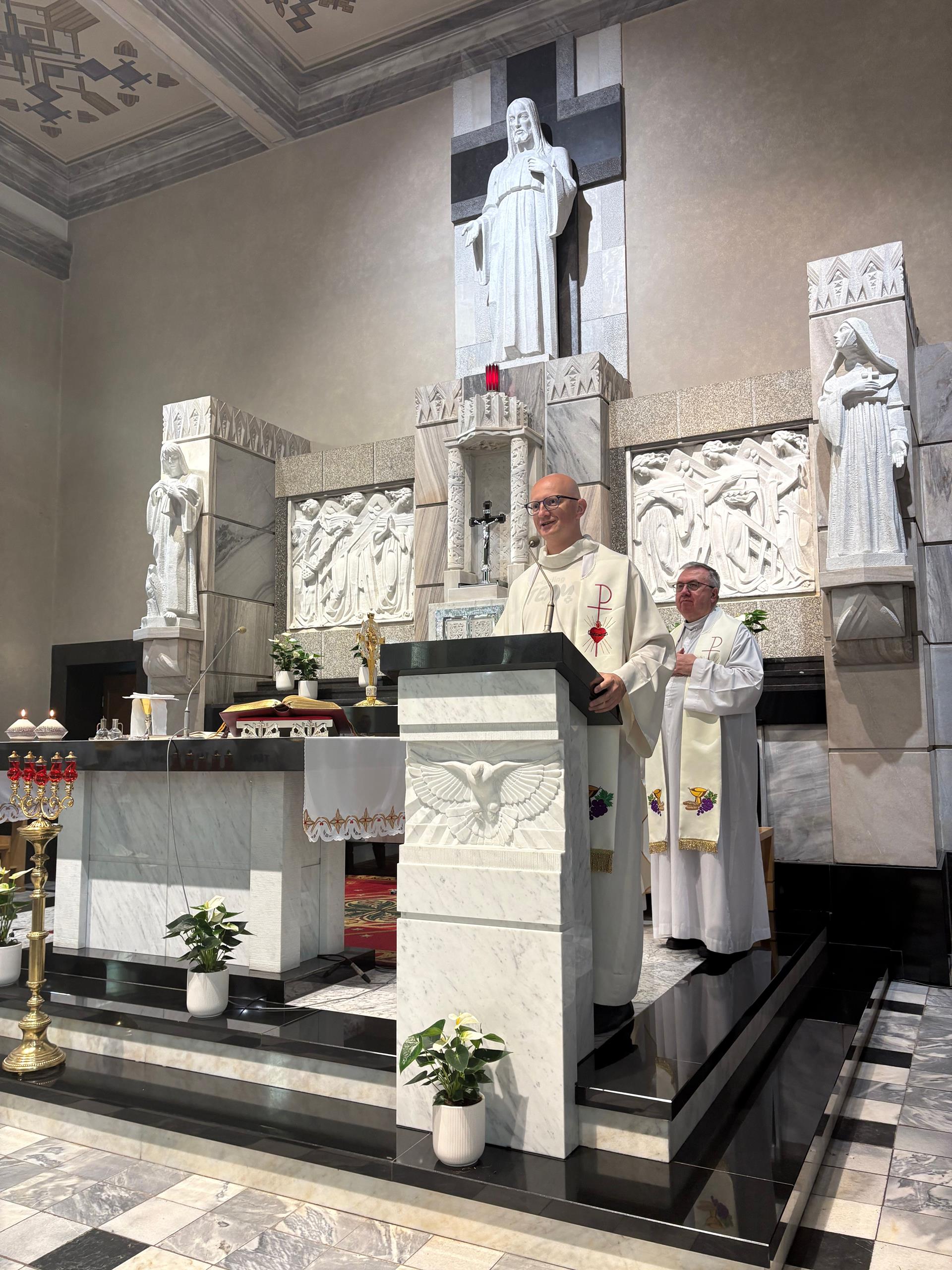 Naszą podróż rozpoczęliśmy od mszy świętej w sanktuarium Matki Bożej Płaszowskiej. Homilię wygłosił ksiądz proboszcz Sławomir Kamiński SCJ, a na drogę pobłogosławił nas ks. Włodzimierz Płatek SCJ, radny prowincjalny.